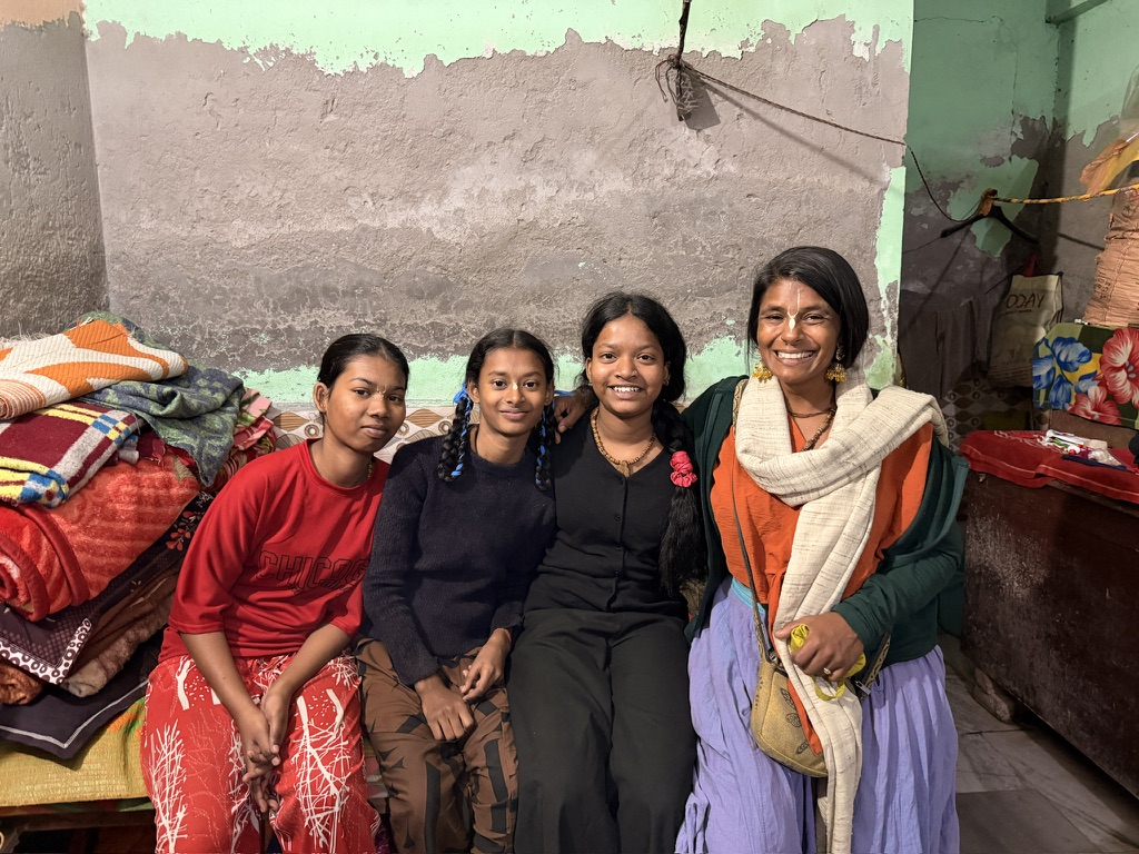 Riding through the streets of Vrindavan on my bike, a sacred pilgrimage place in India, I laugh to myself. Dodging e-rickshaws, cars, bikes, dogs, monkeys, cows, and pigs, weaving in and out of the chaos, shouts of “Radha Radha” echo in the air as people yell at those ahead of them. Loudspeakers boom from the temples. Amidst all this, there’s a strange calm in the chaos. I think of my friend and how he worries about me riding through intersections in Georgetown. This ride is ten times more intense, yet somehow, I am still alive. I’m always surprised there aren’t more accidents. Not everyone’s nervous system can handle it here—the dirt, poverty, congestion—yet it’s mixed with a fervor to receive grace. It’s all about devotion in motion: rituals, prayers, and chanting. These polar opposites invite a surrender, a non-resistance that produces a flow state without effort.